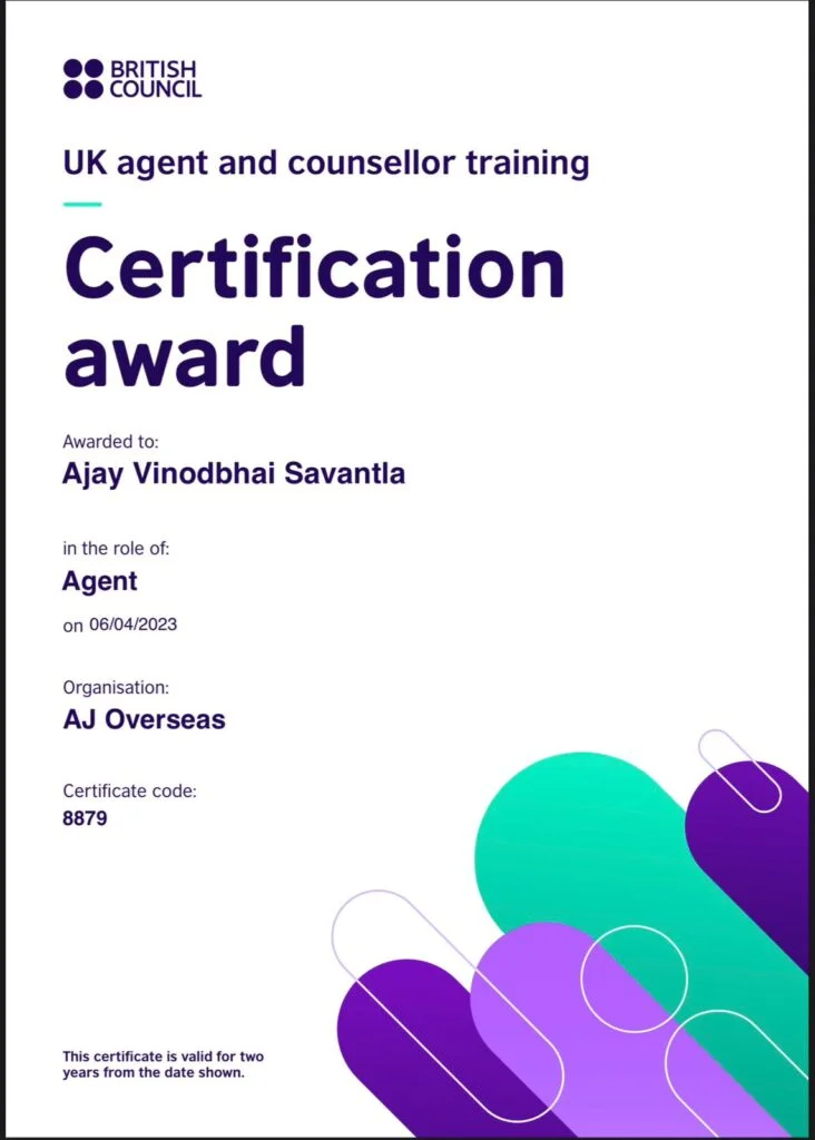 AJ Overseas is now certified by British Council as UK Agent and Counsellor Trainer.
